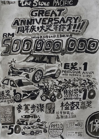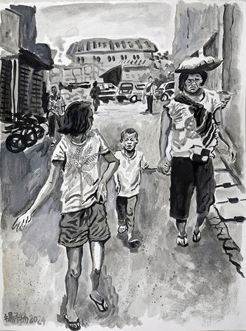 This is the question that Singaporean artist Yeo Tze Yang circles around. His first solo exhibition since moving to Malaysia, Observations Under The Flyover marks not a grand migration, but a drift into a different rhythm. Where his earlier wanderings traced the contours of an entire island city-state, here Tze Yang’s attention settles on Pandan Jaya, a neighbourhood neither central nor peripheral, pinned between the arterial highways of the Klang Valley. Working, walking, seeing every day in the area around his studio, Tze Yang’s practice is shaped by routine. In this act of dwelling, he paints not from nostalgia, but from being somewhere long enough to notice the shape of a footpath, the lean of a stall, the glow of a shop sign after dark.